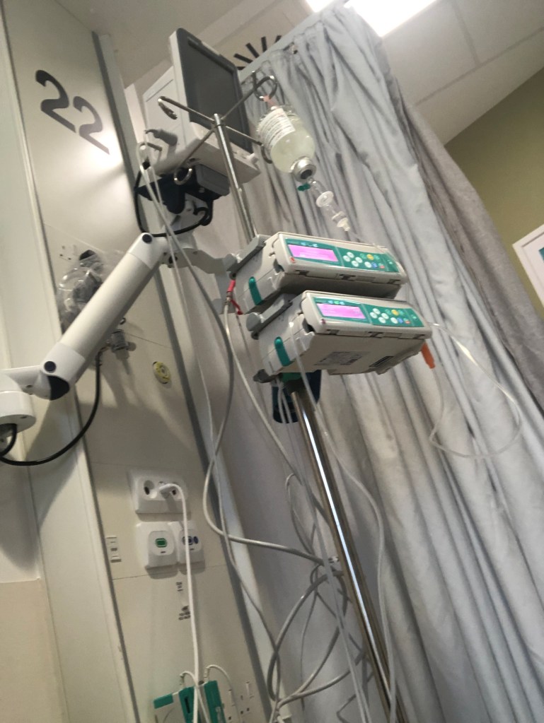 But yet again I am in hospital at the same time as Terry is undergoing treatment 2,650 miles away in Tenerife. It’s a bonded connection. But different treatments as Terry continues to battle Stage 4 Sarcoma. Terry is doing great and will have his 9th round of clinical trial next week